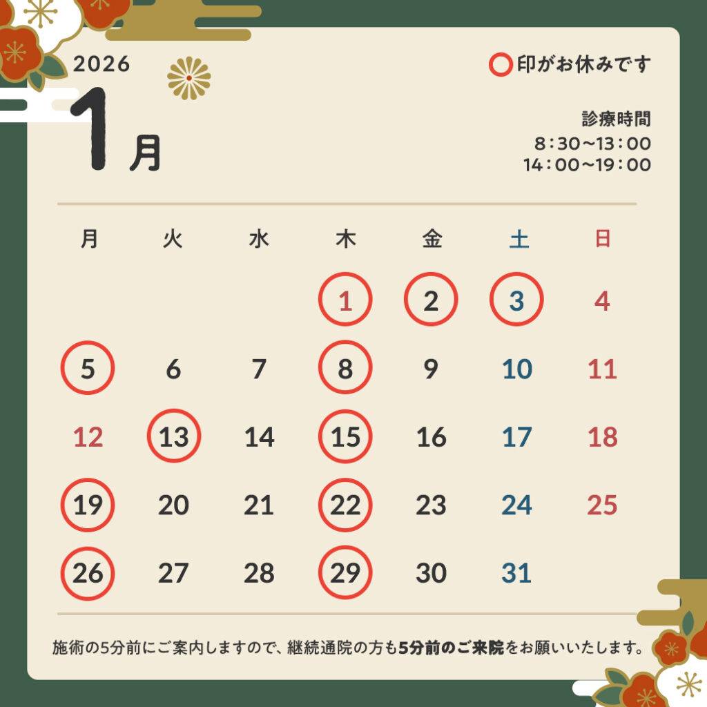 その振替として、1月13日(火)は振替休診とさせていただきます。